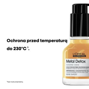 Gama Metal Detox od L'Oréal Professionnel Paris została uzupełniona o nowy, skoncentrowany olejek - rozwiązanie, aby zatrzymać łamanie się włosów w Twojej rutynie pielęgnacji i stylizacji. Już po jednym użyciu włosy są odżywione i ponownie wypełnione. Dla wszystkich rodzajów włosów. Olejek cudownie rozświetla włosy i wzmacnia je, dzięki czemu są znacznie mniej łamliwe. Ponadto glikoamina zapobiega osadzaniu się metali, dzięki czemu włosy są zdrowsze i bardziej podatne na zabiegi koloryzacji (kolor jest równomierny). Olejek szybko przenika do głębokich struktur włosa i nie obciąża kosmyków.
