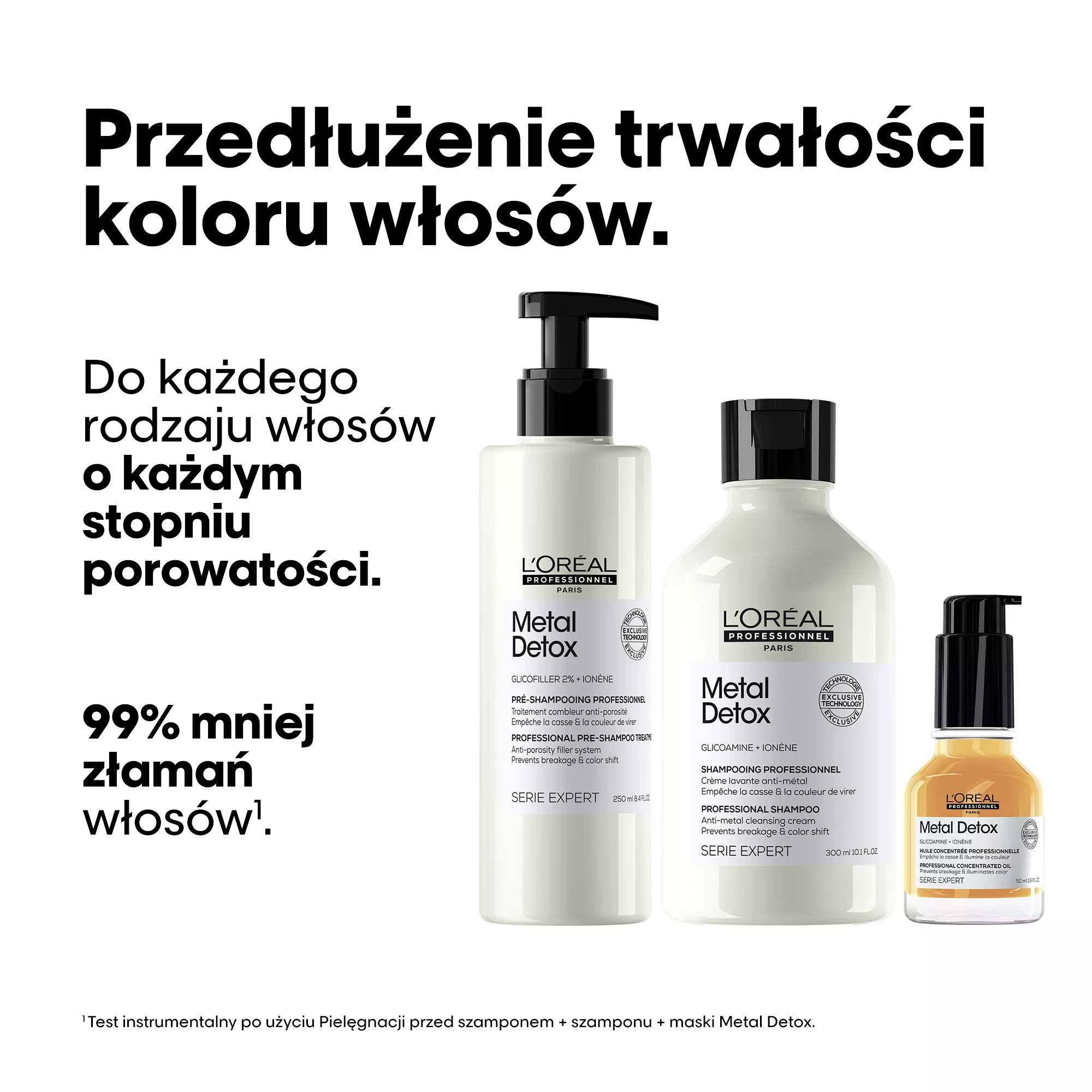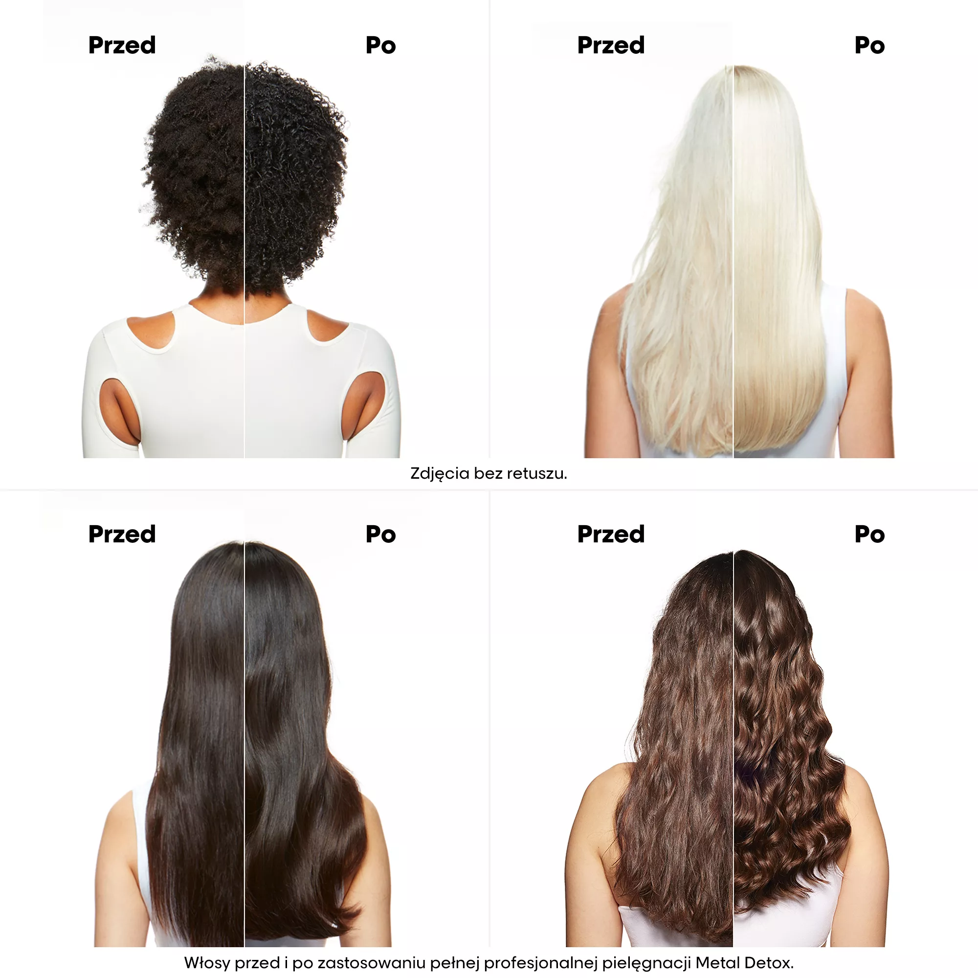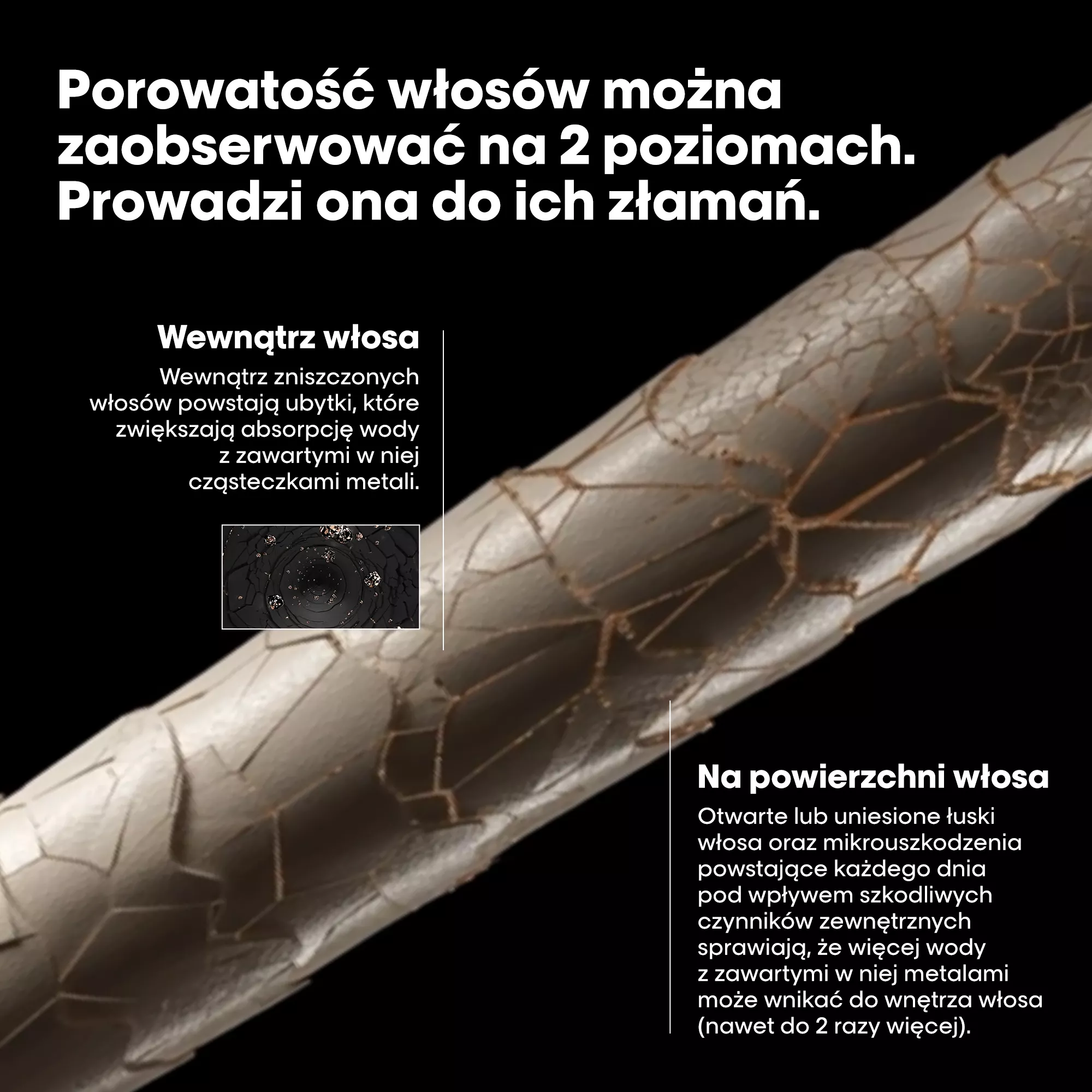 *Test instrumentalny. **Test instrumentalny po 10 aplikacjach Pielęgnacji przed szamponem + szamponu + maski + olejku Metal Detox.