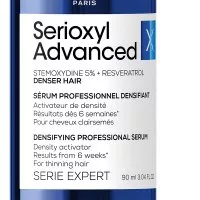 Serum do włosów Loreal Serioxyl Advanced powstało z myślą o osobach borykających się z problemem przerzedzania. Kosmetyk zawiera 5% Stemoxydina i Resweratolu. Serum pielęgnuje włosy i skórę głowy, a ponadto zagęszcza je i dba o ich odpowiednią kondycję. Efekt gęstych włosów już po 6 tygodniach! Składniki aktywne zawarte w serum optymalizują cykl włosa i przyspieszają odnowę mieszków włosowych. Dzięki temu ty możesz się cieszyć włosami pełnyi objętości.