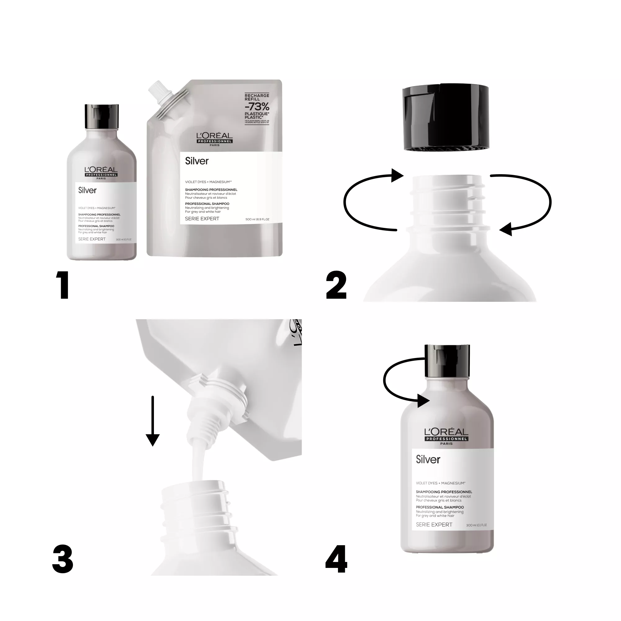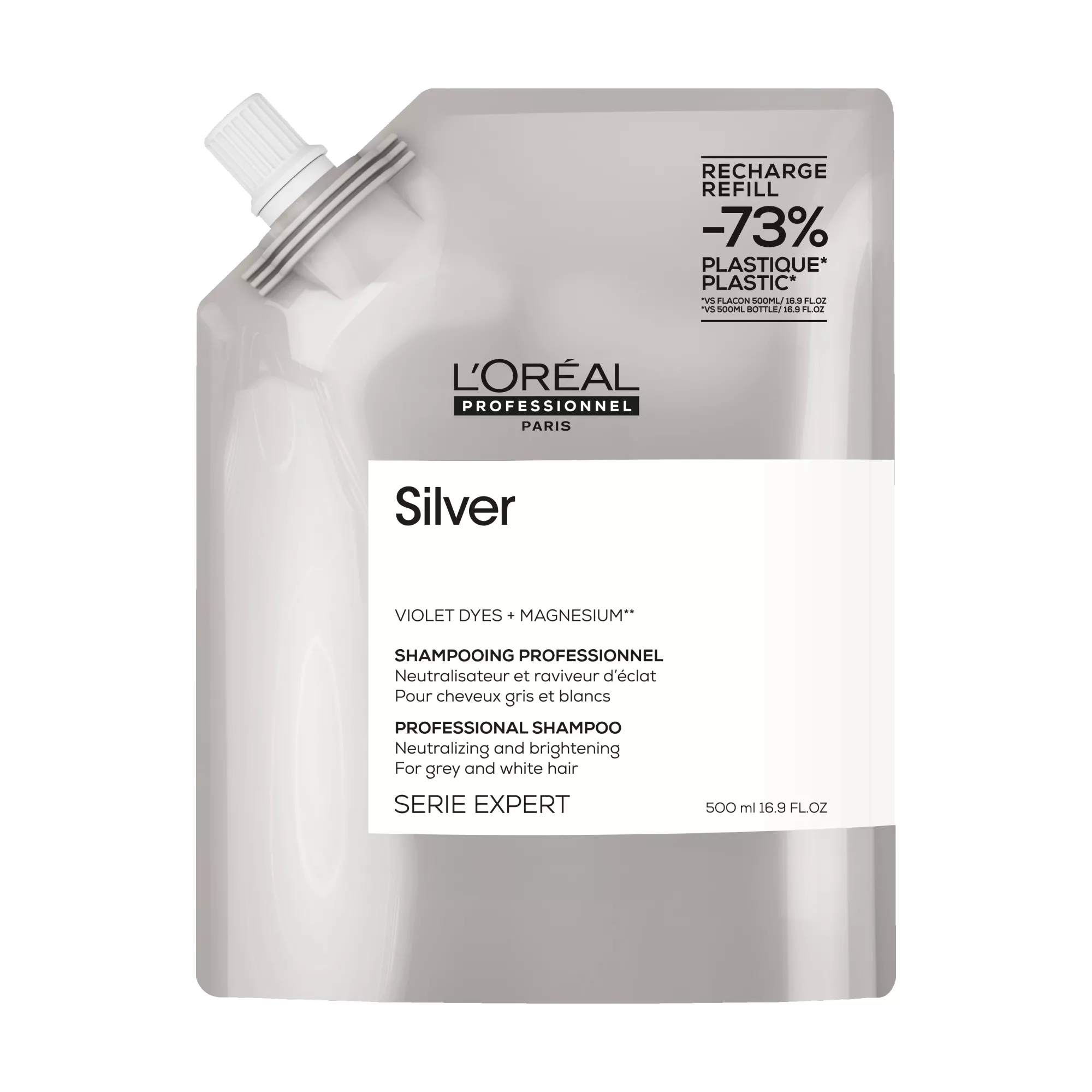 Loreal Silver, szampon do włosów siwych, refill, 500ml