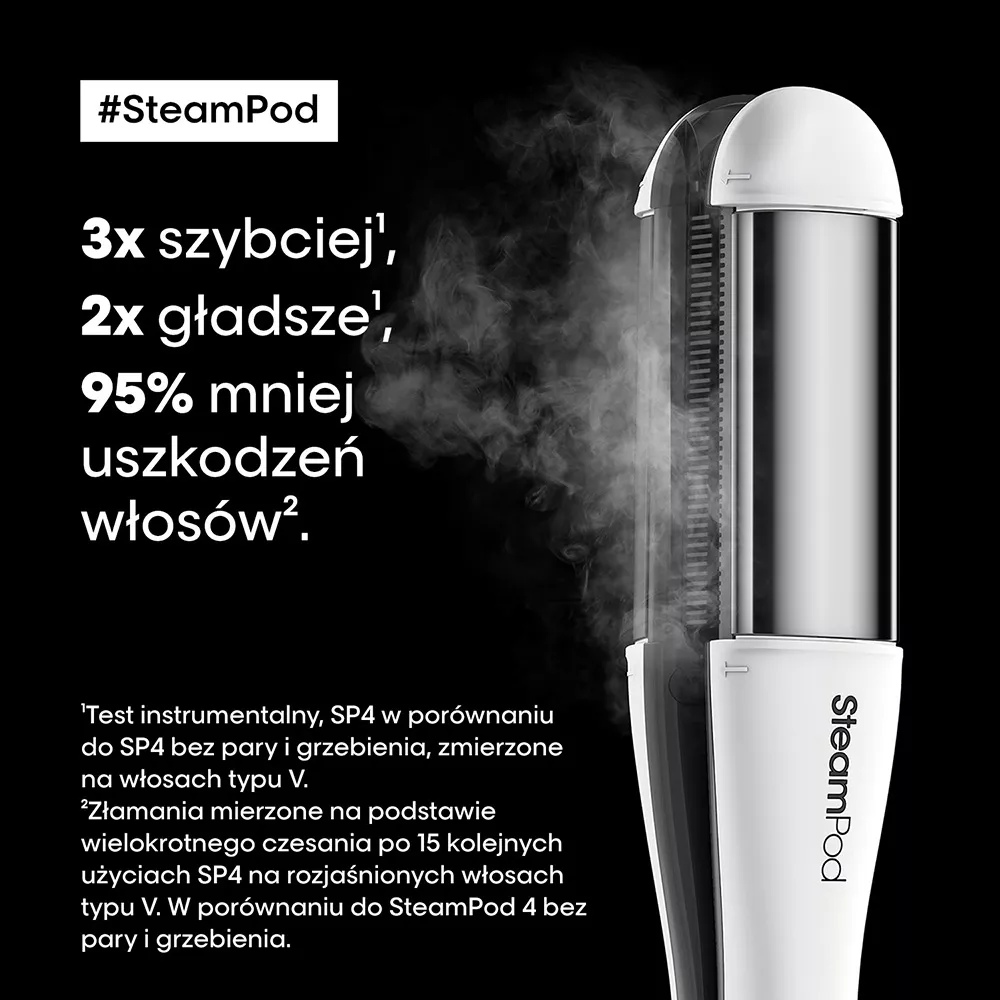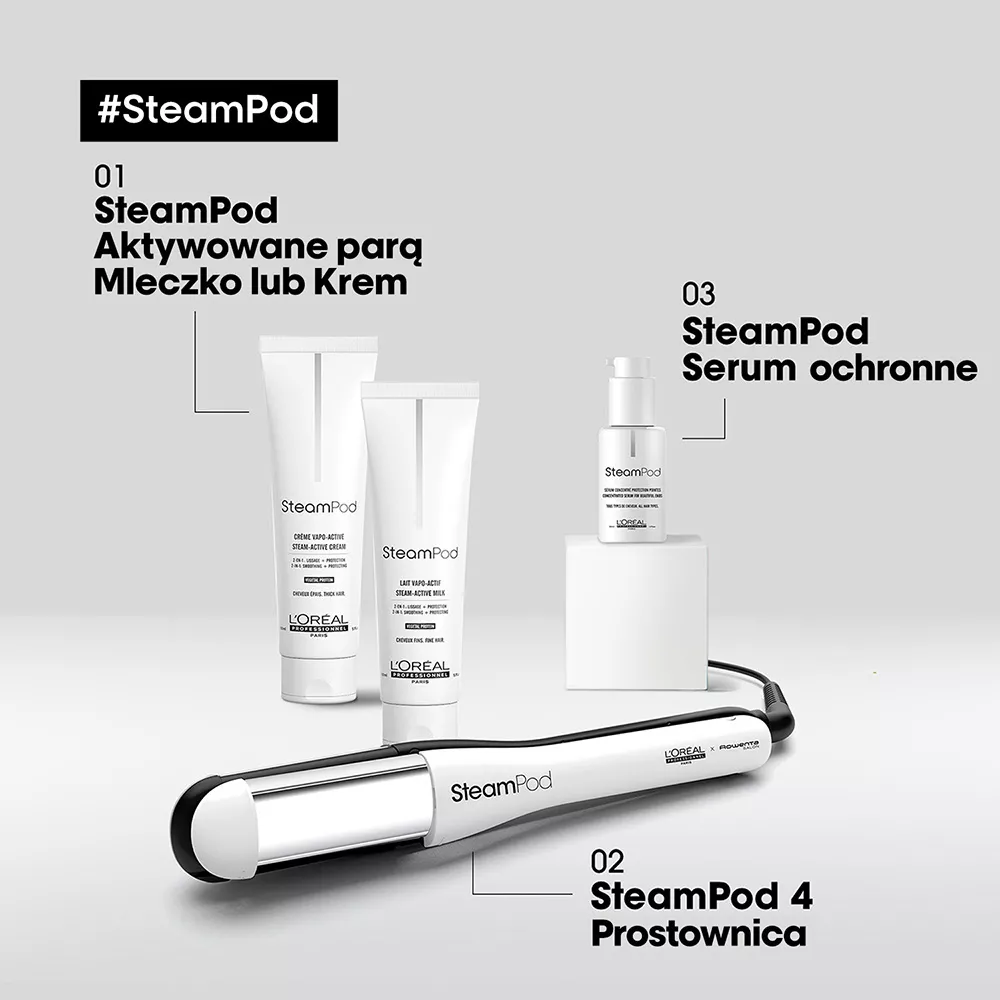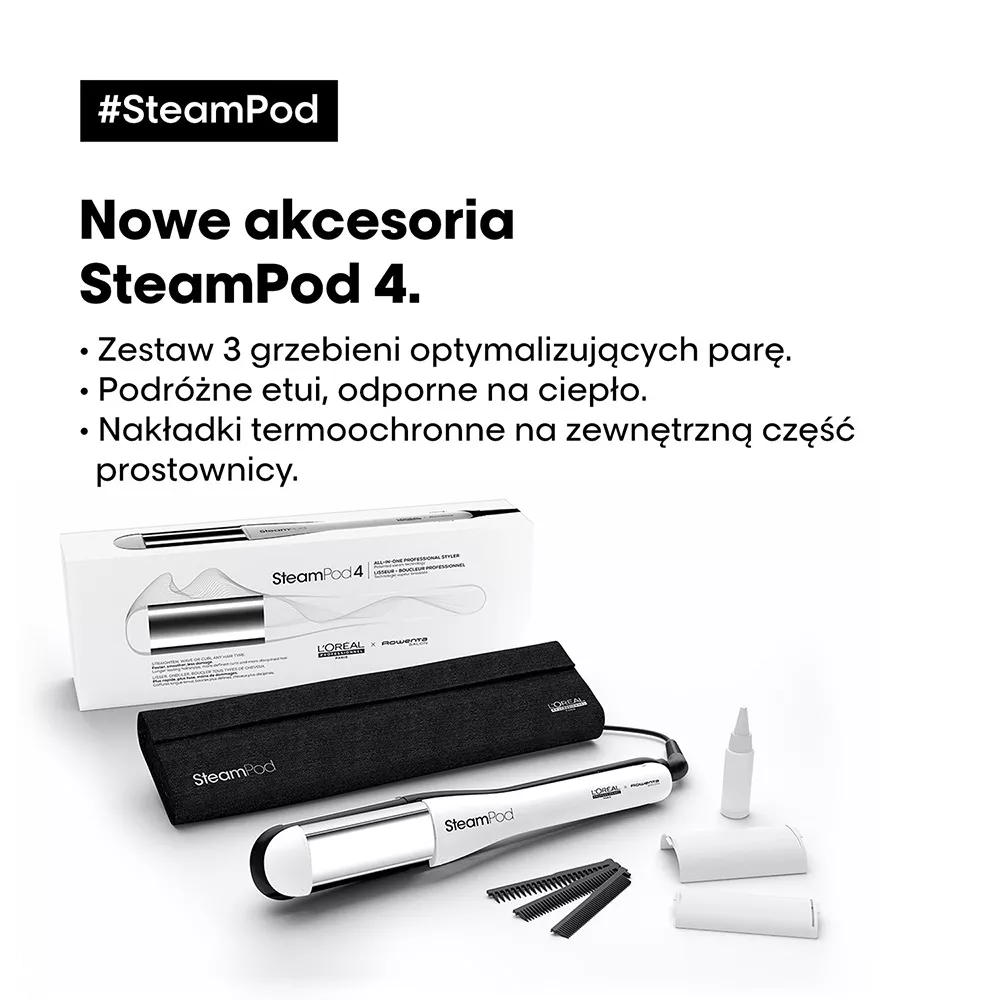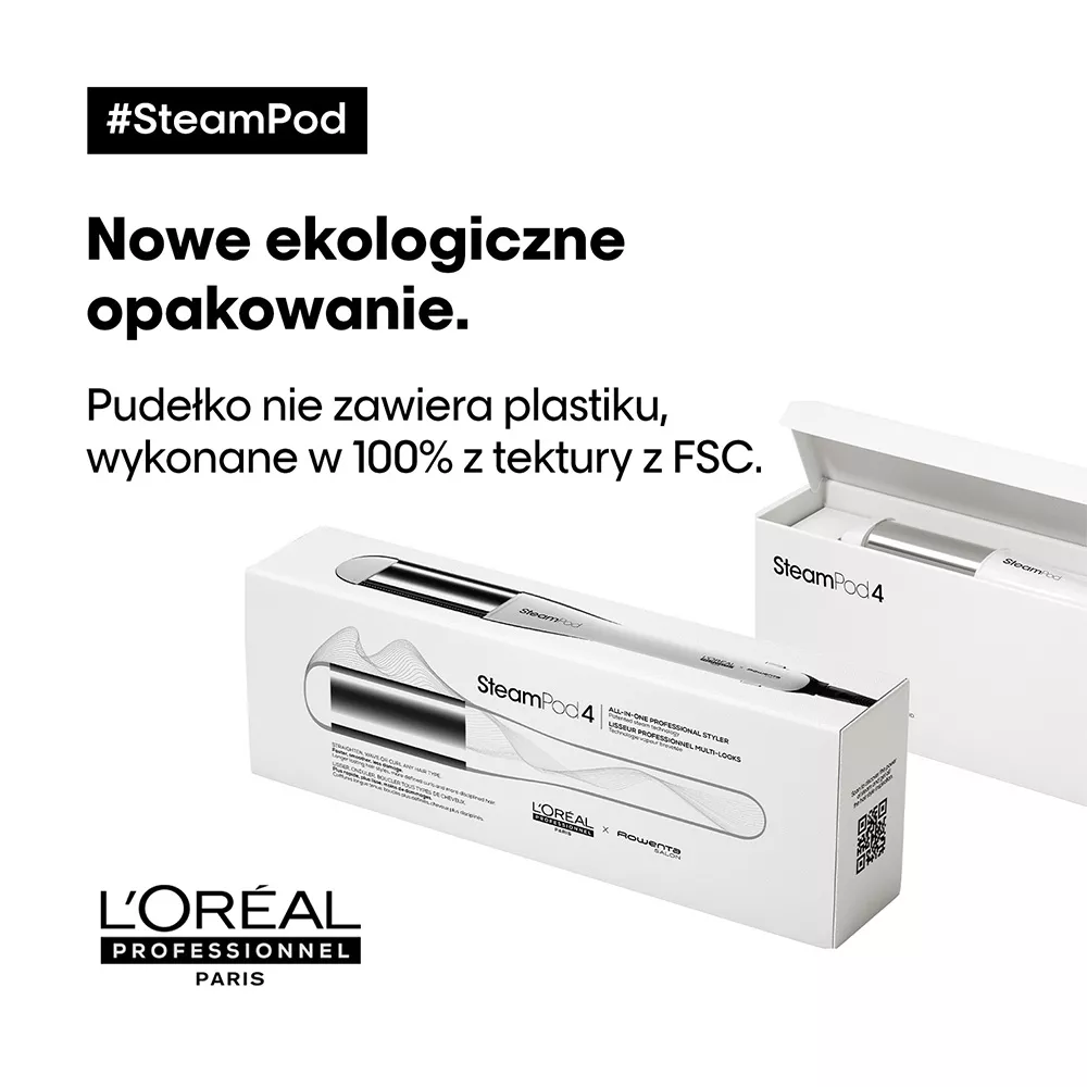 Innowacyjna parowa prostownica do włosów Loreal Professionnel Steampod 4.0 w nowej, ulepszonej odsłonie! Wersja Steampod 4.0 posiada szersze płytki, dzięki czemu sięgają one bliżej nasady włosów. Ponadto nowa, ergonomiczna konstrukcja ułatwia stylizację. Steampod 4.0 jest cieńszy i posiada bardziej okrągłe górne ramię dla jeszcze piękniejszych loków i fal. Opakowanie jest lżejsze, nie zawiera plastiku, a etui ochronne pochodzi z recyclingu. Na uchwycie Steampod 4.0 znajduje się kod QR do poradnika ze wskazówkami, jak stworzyć dowolną stylizację.