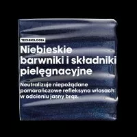Szampon Blue Dyes z gamy Vitamino Color Spectrum od L'Oréal Professionnel Paris został opracowany specjalnie do włosów w odcieniach jasnego brązu. Dokładnie oczyszcza włókna włosów i zapewnia im wzmocnienie oraz odżywienie. Dzięki niebieskim pigmentom natychmiast neutralizuje niechciane pomarańczowe odcienie na włosach. Wzbogacona o składniki odżywcze, kremowa formuła zapewnia efekt we wszystkich 5 wymiarach koloru**: ultramocny połysk tafli, bogate kolory, optymalną głębię odcieni koloru, brak niepożądanych refleksów oraz przejścia tonalne pomiędzy jasnymi i ciemnymi refleksami.
