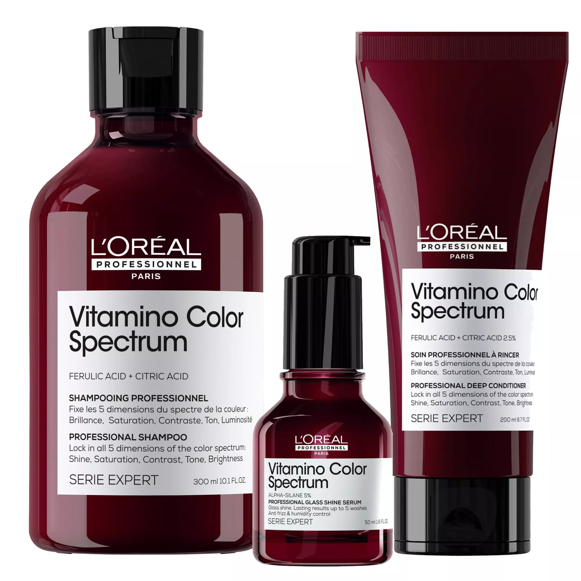 Pielęgnacja Vitamino Color Spectrum pomaga zachować intensywność koloru włosów od pierwszego dnia koloryzacji aż do 100 dni*. Zapewnia niezwykle wysoki połysk tafli lustra oraz bogate i żywe kolory. Włosy są oczyszczone, natychmiast odżywione i mocniejsze.