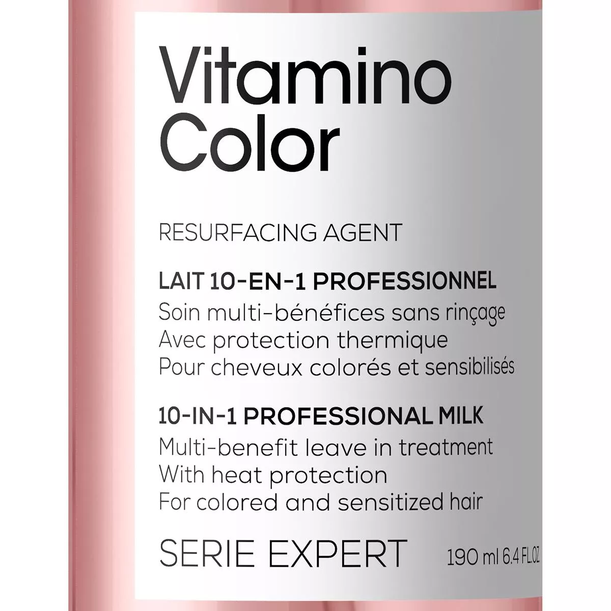 Poznaj nowy wymiar pielęgnacji włosów koloryzowanych. Spray 10w1 Loreal Vitamino Color. Kosmetyk przynosi wiele korzyści włosom farbowanym i sprawia, że każdego dnia wyglądają pięknie i są zdrowe. Kosmetyk wzmacnia włosy i zwiększa ich odporność na uszkodzenia mechaniczne. Włosy są nawilżone, nie puszą się, są gładkie. Spray chroni też przed rozdwajaniem końcówek. Kosmetyk zapewnia włosom termoochronę do 230°C. A do tego kosmetyk przyspiesza suszenie i pozostawia włosy cudownie miękkie. W składzie znajduje się resweratol, czyli polifenol uzyskiwany z winogron. Działa on antyoksydacyjnie, wzmacniająco i regenerująco. Dodatkowo pantenol pogrubia włosy i poprawia ich strukturę.