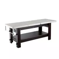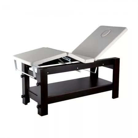 Posiada regulowaną pozycja oparcia oraz zintegrowany zagłówek z otworem na twarz. Pod tapicerką znajduje się praktyczna przestrzeń do przechowywania akcesoriów, łóżko wyposażone jest też w uchwyt na ręczniki.