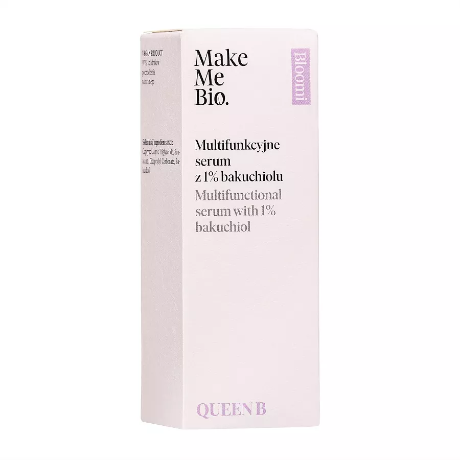 Serum dzięki wszechstronnemu działaniu bakuchiolu, rozjaśnia przebarwienia, zmniejsza oznaki starzenia skóry, działa regulująco na sebum i antybakteryjnie, zachowując przy tym delikatność działania. Doskonale sprawdzi się przy skórze wrażliwej, nie powodując podrażnień. Serum można bez obaw wdrażać do pielęgnacji bez budowania tolerancji, ponieważ bakuchiol nie powoduje efektów ubocznych.