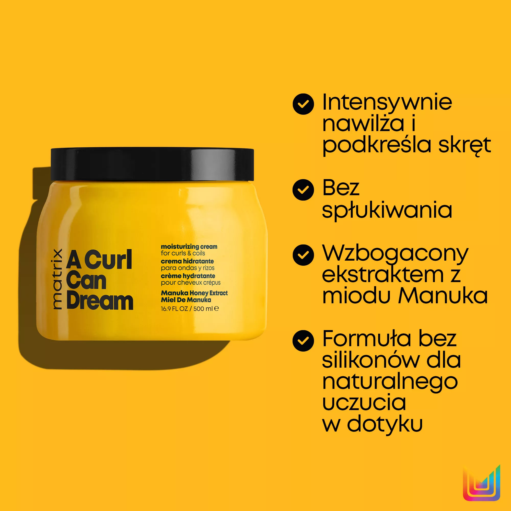 Krem do stylizacji i pielęgnacji loków Matrix A Curl Can Dream to prosty sposób na zadbanie o swoje włosy i zapewnienie im odpowiedniej ochrony. Kosmetyk zawiera ekstrakt z miodu manuka. Krem intensywnie nawilża włosy i pomaga utrzymać ich skręt. A do tego zapewnia skuteczną termoochronę. Twoje loki tego potrzebują!