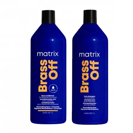 Nie podobają Ci się miedziane i złote odcienie na Twoich włosach? Możesz się ich szybko pozbyć, a dodatkowo poprawić kondycję swoich włosów. Przygotowaliśmy gotowy zestaw kosmetyków ochładzających odcień Matrix Brass Off. Te kosmetyki zawierają niebieski pigmenty, który neutralizuje miedziane i miedziano-złote odcienie, dodaje pasmom blasku i miękkości, a dodatkowo odżywiają je za sprawą kompleksu witaminowego. To idealne rozwiązanie także dla włosów rozjaśnianych.