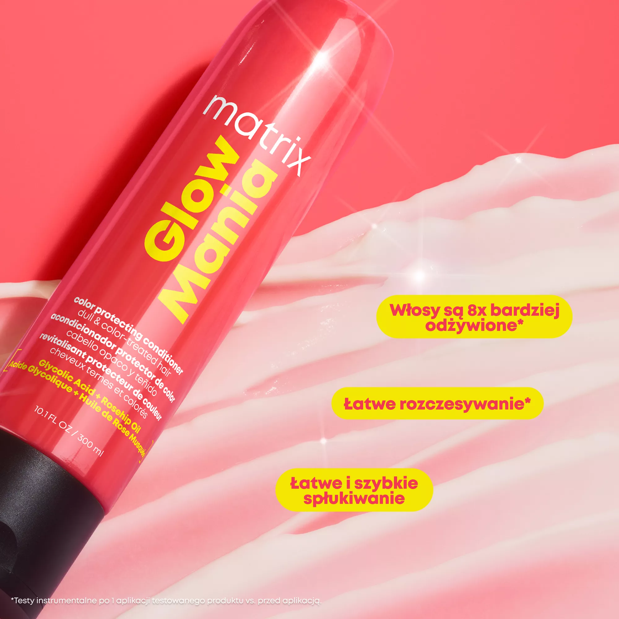 *Na podstawie badań konsumenckich przy zastosowaniu systemu Glow Mania składającego się z szamponu, odżywki lub maski i odżywki bez spłukiwania.