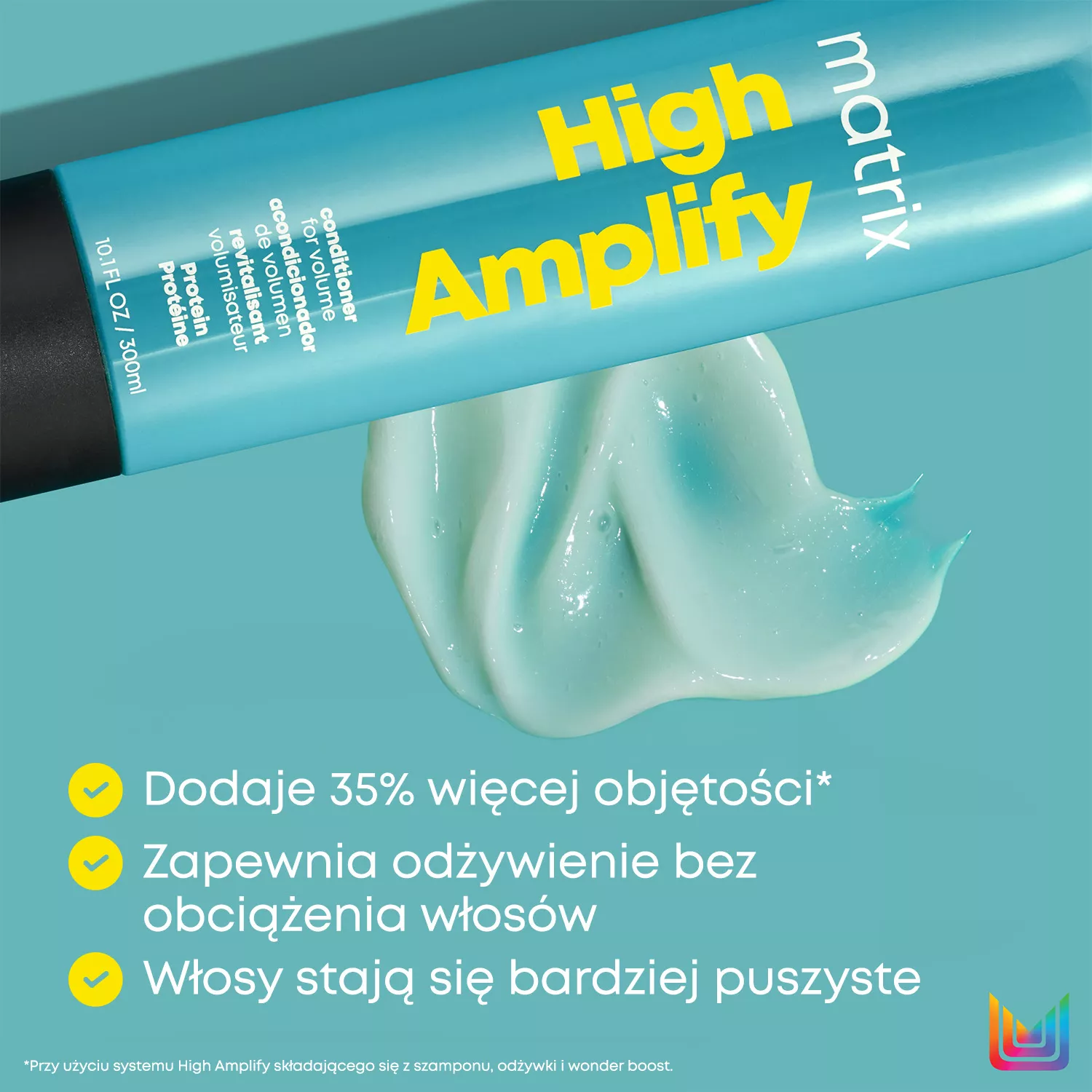 Odżywka Matrix Total Results High Amplify przeznaczona jest do pielęgnacji włosów cienkich. Kosmetyk ten zawiera w składzie proteiny, które dodają objętości włosom. Ponadto włosy zyskują fenomenalną strukturę i cudowny kształt. Produkt nie zawiera silikonów, dzięki temu nie obciąża pasma. Świetnie sprawdzi się w codziennej pielęgnacji.