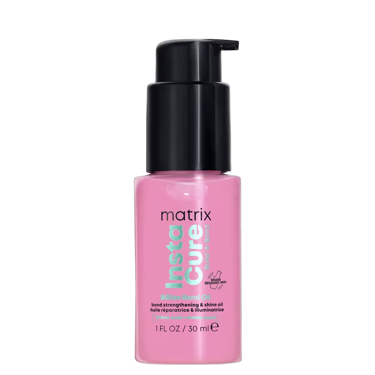 Olejek odbudowujący Instacure Build-A-Bond Billion Bond Oil od Matrix to miliard wiązań dla widocznej rekonstrukcji uszkodzeń. Zawiera kwas cytrynowy, który wzmacnia wiązania we włosach i aminokwas, który odbudowuje ich wewnętrzne struktury. Olejek dodaje włosom blasku nie obciążając ich. Szybko się wchłania, nie pozostawiając tłustej warstwy. Technologia bonding natychmiastowo regeneruje i wzmacnia włosy. Sprawia, że pasma łatwo się rozczesują i są miękkie w dotyku. Wygładza je i nadaje im jedwabisty połysk.