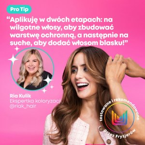 Stosuj regularnie. Nałóż dwie pompki produktu na wilgotne lub suche włosy, rozetrzyj w dłoniach i równomiernie rozprowadź od połowy długości aż po same końce - w razie potrzeby dodaj więcej. W celu ochrony przed wysoką temperaturą stosuj przed użyciem urządzeń do stylizacji termicznej. Nie spłukuj.