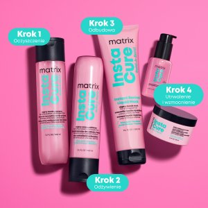 *Test instrumentalny przy użyciu systemu składającego się z szamponu, maski i olejku Instacure Build-A-Bond w porównaniu z klasycznym szamponem.