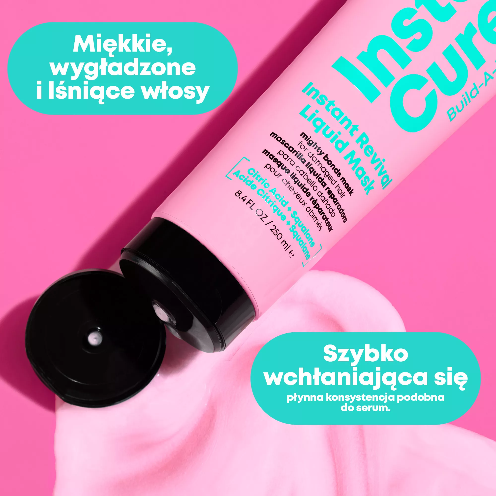 Maska do włosów INSTACURE BUILD-A-BOND szybko się wchłania i pozostawia miękkie, wygładzone, lśniące oraz łatwe w rozczesywaniu włosy nie obciążając ich.