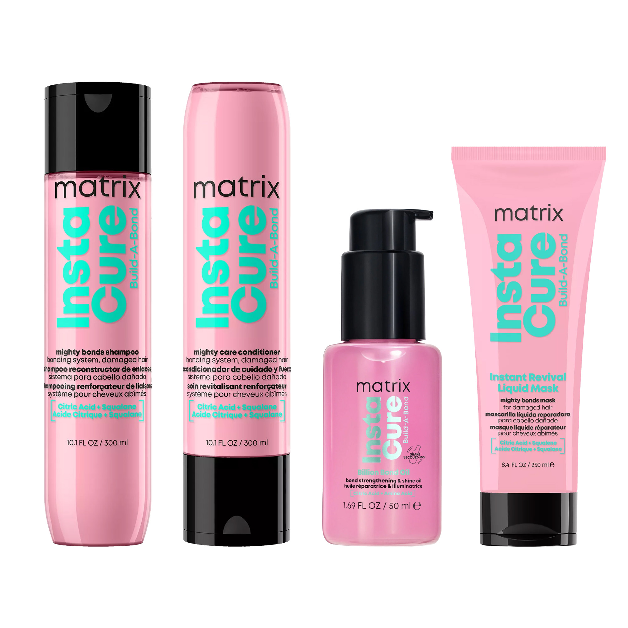 Matrix Instacure Build-A-Bond, zestaw odbudowujący do włosów zniszczonych, szampon + odżywka + maska + olejek