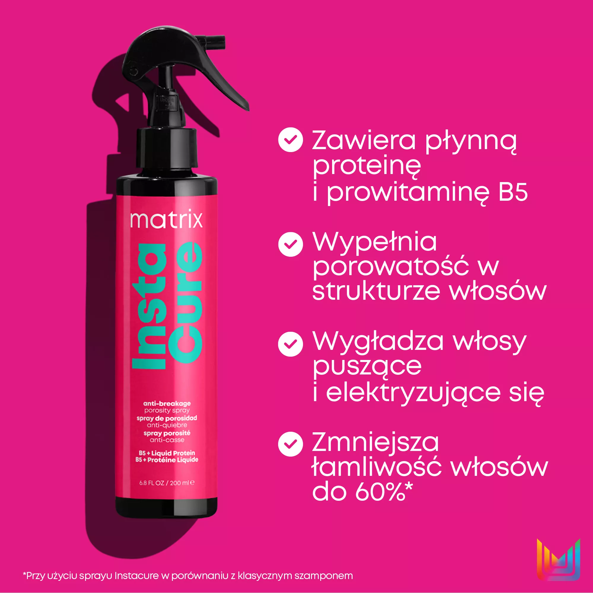 *Przy użyciu spray’u Instacure w porównaniu z szamponem bez odżywki.