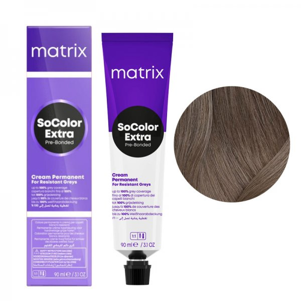 Farba do włosów Matrix SoColor PreBonded Extra Coverage to koloryzacja trwała w formie wygodnego do rozprowadzania kremu. Farba stworzona dla szczególnie dla Pań mających ponad 50% siwych włosów. Koloryzacja produktami Matrix to gwarancja długotrwałego i intensywnego koloru. Extra Coverage to gama dedykowana włosom siwym.