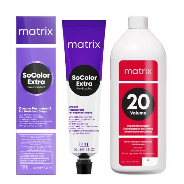 Farba do włosów Matrix SoColor PreBonded Extra Coverage to koloryzacja trwała w formie wygodnego do rozprowadzania kremu. Farba stworzona dla szczególnie dla Pań mających ponad 50% siwych włosów. Koloryzacja produktami Matrix to gwarancja długotrwałego i intensywnego koloru. Extra Coverage to gama dedykowana włosom siwym. Teraz farba Matrix dostępna w gotowym zestawie z oksydantem (w zastępczej buteleczce o pojemności 90ml)