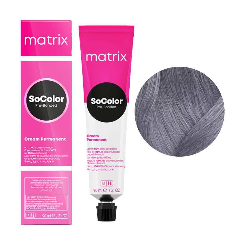 Farba do włosów Matrix SoColor to koloryzacja trwała w formie wygodnego do rozprowadzania kremu. Farba stworzona dla szczególnie dla Pań mających ponad 50% siwych włosów. Dzięki żelowo-kremowej formuła ma bardziej gęstą i wydajną konsystencję, idealnie łączy się z aktywatorem, co ułatwia precyzyjną aplikację, idealnie przylega do powierzchni włosa, nie spływa i idealnie wnika wgłąb jego struktury. Nowa formuła wzbogacona jest ochronną technologią Pre-Bonded. Dzięki temu włosy są chronione przed zniszczeniami podczas koloryzacji. Kosmetyk zapewnia intensywne, pełne blasku kolory na długi czas.