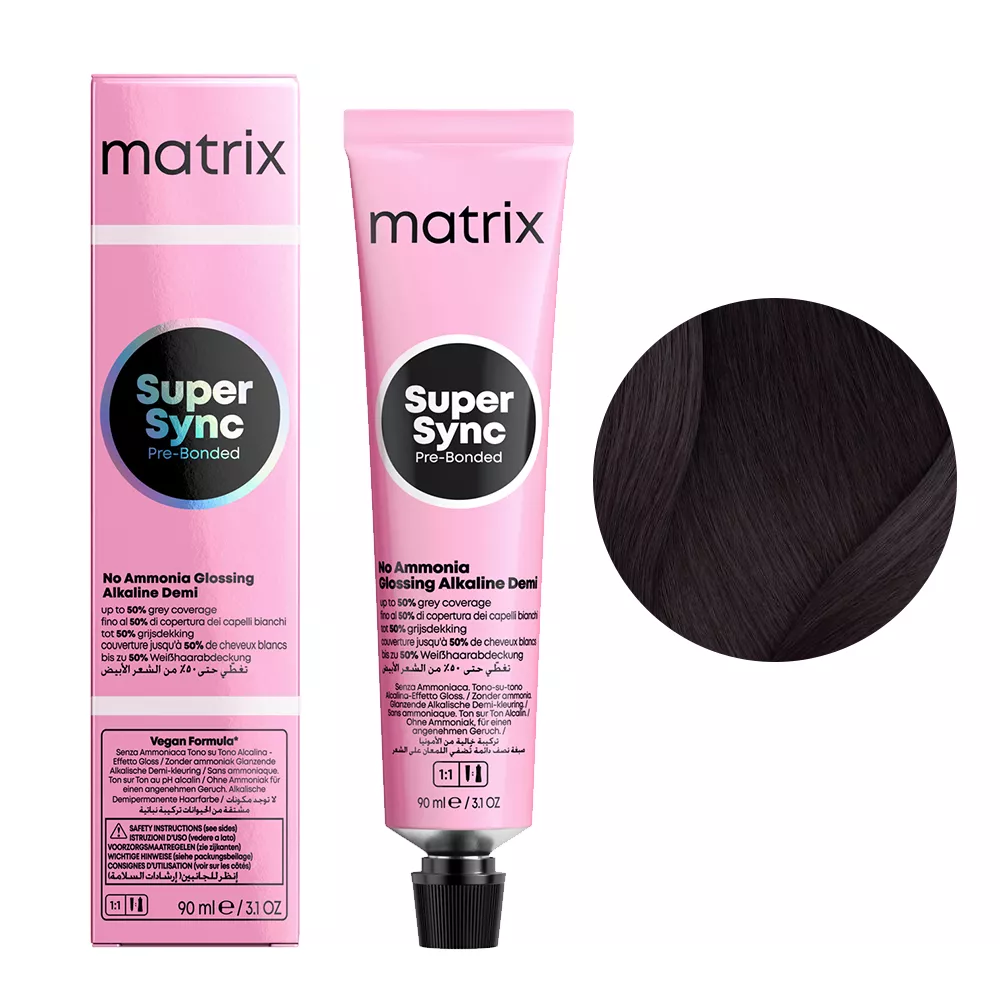 Matrix Super Sync Pre-Bonded to rozświetlające tonery alkaliczne dające nawet 2 razy więcej blasku z całkowicie nowym kompleksem Pre-Bonded dla natychmiastowej ochrony struktury włosa. Zapewniają pokrycie do 50% siwych włosów. Pojemność 90 ml starcza nawet do 2 aplikacji. Formuła wegańska.