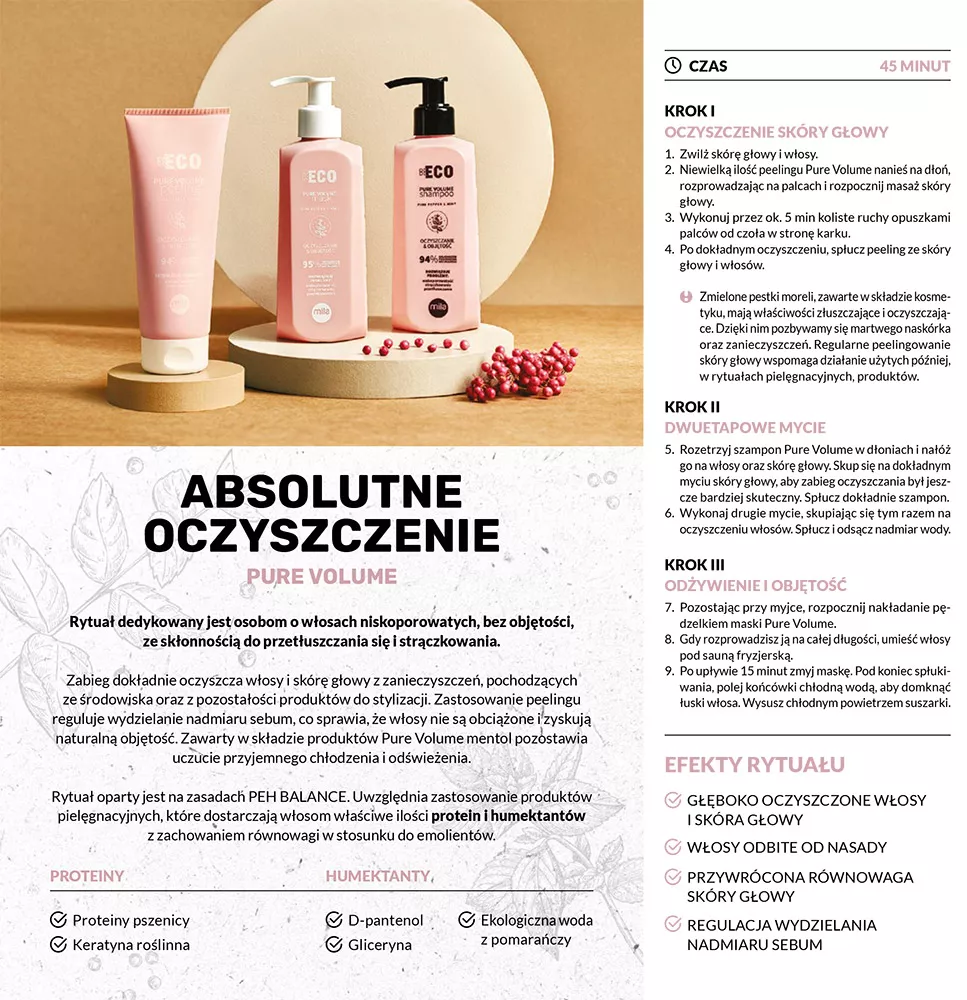 Odkryj moc natury z maską Mila Professional Be Eco Volume, która oczyszcza i nadaje objętość Twoim włosom. Idealna dla osób z włosami niskoporowatymi, przyklapniętymi i przetłuszczającymi się. Dzięki wyjątkowej formule PEH BALANCE, maska przywraca równowagę między proteinami, humektantami i emolientami, zapewniając włosom zdrowy wygląd i spektakularną objętość.
