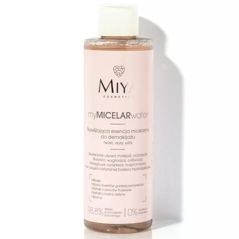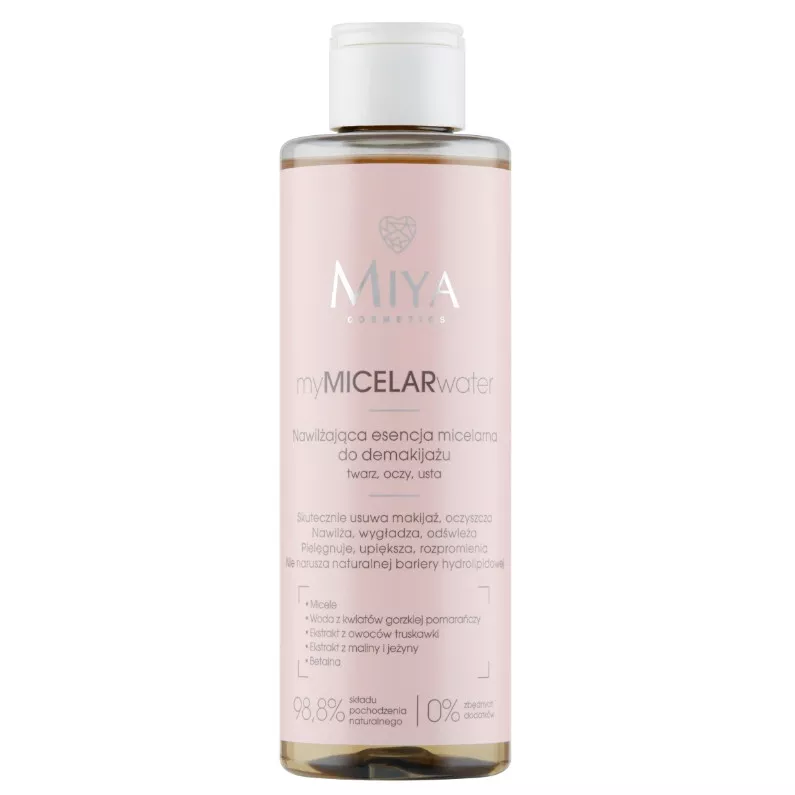 Miya My Micelar Water to wyjątkowa micelarna esencja do demakijażu, która łączy w sobie skuteczność i delikatność. Przeznaczona do każdego typu skóry, doskonale usuwa zanieczyszczenia, makijaż – nawet wodoodporny – bez konieczności pocierania, zapewniając jednocześnie pielęgnację i nawilżenie. Wegańska formuła, oparta na 98% składników pochodzenia naturalnego, jest bezpieczna dla kobiet w ciąży i karmiących piersią.