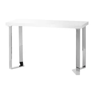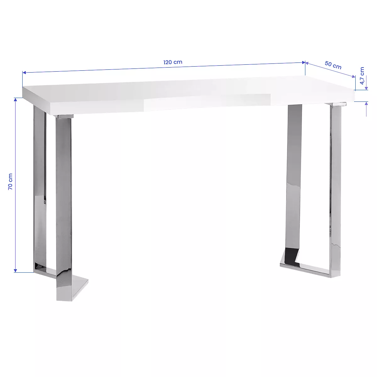 Nowoczesna forma biurka, łącząca biały blat ze srebrnymi, geometrycznymi nogami, dodaje wnętrzu lekkości i elegancji. Dzięki swojej kompaktowej, a zarazem stylowej formie, biurko doskonale sprawdzi się zarówno w małych gabinetach, jak i większych, nowoczesnych wnętrzach.