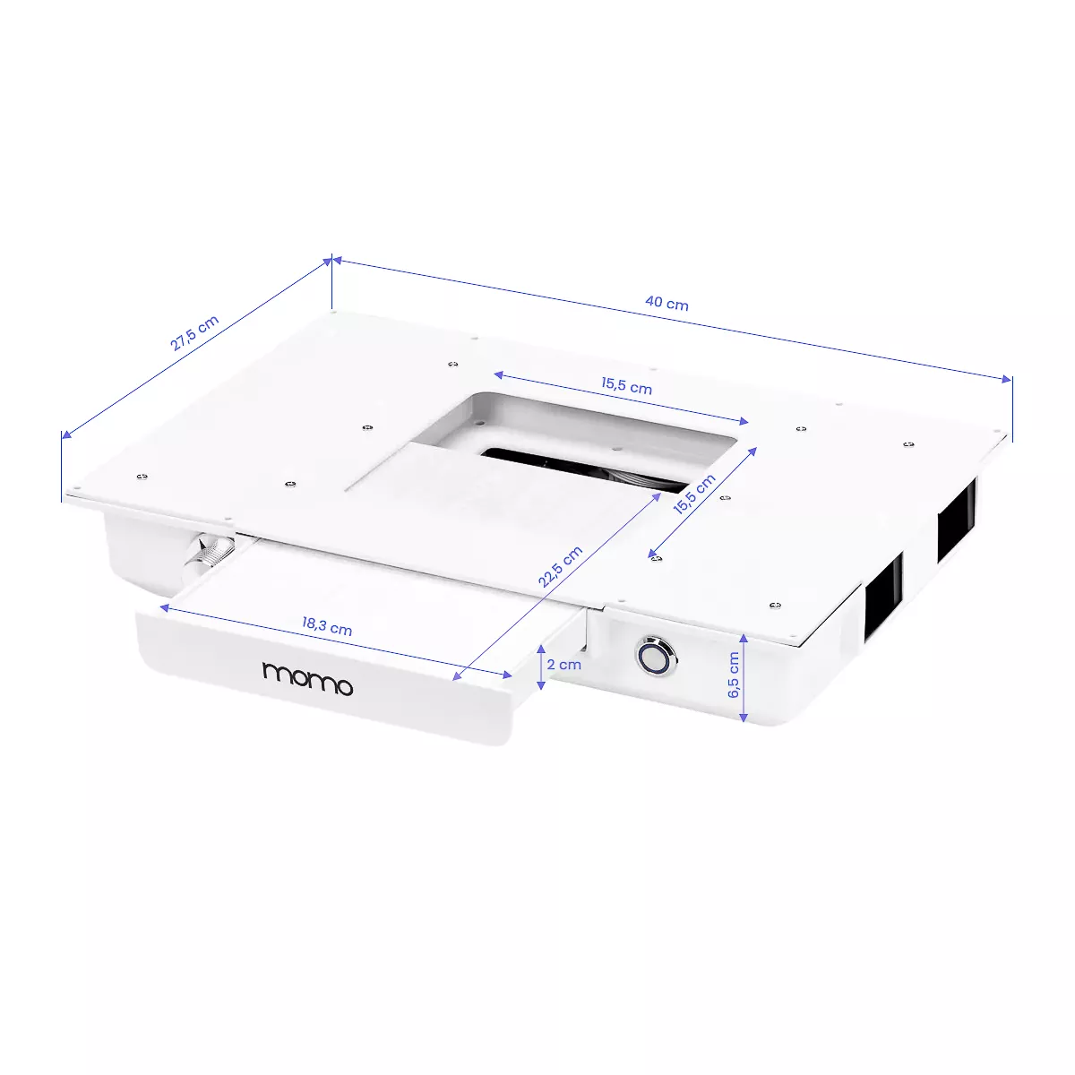 Kasetowy pochłaniacz pyłu Momo J-02 wbudowany w blat znacząco poprawia komfort i higienę pracy, skutecznie usuwając pył powstały podczas zabiegów kosmetycznych, takich jak manicure. Dzięki temu urządzeniu powietrze w salonie pozostaje czyste, a miejsce pracy wolne od zanieczyszczeń, co zwiększa bezpieczeństwo zarówno dla kosmetyczki, jak i klientów. Pochłaniacz pyłu jest łatwy w obsłudze i konserwacji, co dodatkowo podnosi jego funkcjonalność. Regularne czyszczenie oraz wymiana filtra zapewniają niezmiennie wysoką skuteczność pochłaniania. Istnieje możliwość zakupu dodatkowych filtrów wymiennych (SKU 123581). W naszym sklepie dostępny jest również filtr z aktywnym węglem (SKU 123582), który skutecznie eliminuje alergeny i drobnoustroje, podnosząc poziom higieny w salonie.