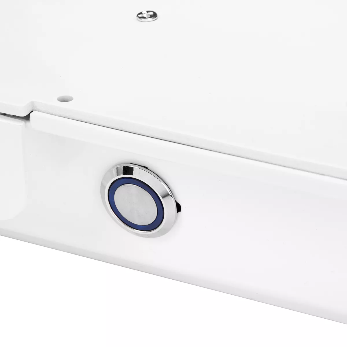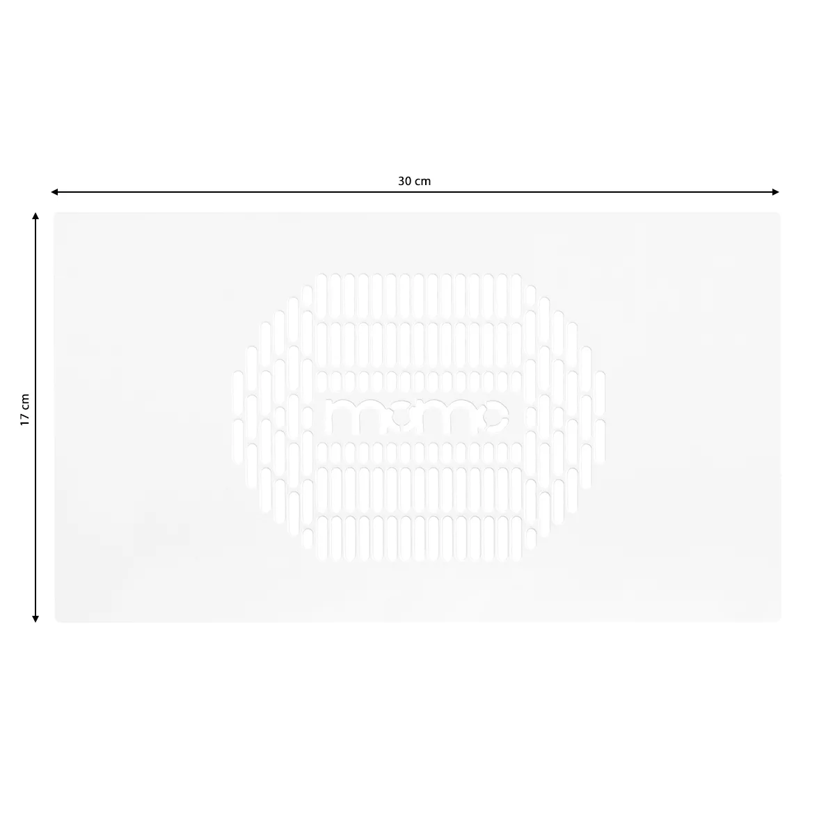 Pochłaniacz montowany w blacie stołu kosmetycznego nie zajmuje cennej przestrzeni roboczej, co ułatwia organizację stanowiska i zwiększa komfort pracy. Minimalistyczny wygląd oraz solidna konstrukcja sprawiają, że doskonale wygląda w każdym profesjonalnym salonem stylizacji paznokci. Trwałe materiały oraz estetyczne wykończenie gwarantują długotrwałe i niezawodne użytkowanie. Dodatkowo, metalowa kratka nie tylko zwiększa odporność urządzenia, ale także podkreśla jego nowoczesny charakter.