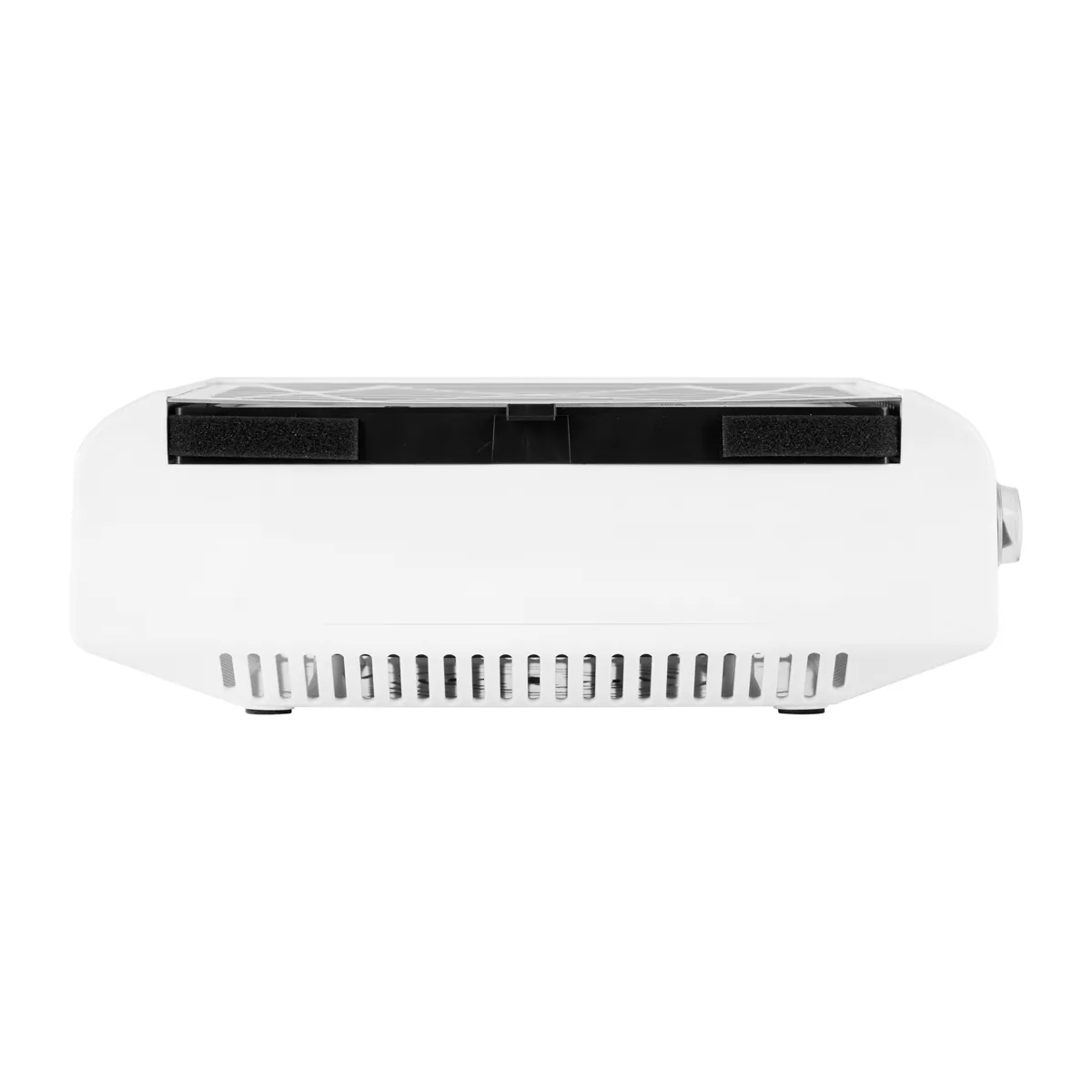 Duża powierzchnia wchłaniania pozwala na trzymanie nad urządzeniem obu dłoni naraz, a dzięki znacznej wydajności pochłaniacza zanieczyszczenia są wchłaniane wprost do filtra, pozostawiając stanowisko pracy czyste i wolne od szkodliwego pyłu. Odpowiednio rozmieszczone od spodu urządzenia otwory wentylacyjne zapewniają swobodny przepływ powietrza. Wentylator może dzięki temu pracować nieprzerwanie przez dłuższy czas, minimalizując ryzyko przegrzania.