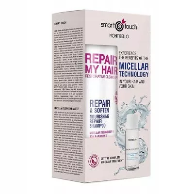 Odkryj wyjątkowy zestaw prezentowy Montibello Smart Touch Repair, który jest idealnym rozwiązaniem dla osób poszukujących skutecznej pielęgnacji zniszczonych i osłabionych włosów. Ten zestaw łączy w sobie delikatny szampon micelarny oraz płyn micelarny do demakijażu, tworząc kompletny duet do codziennego użytku.