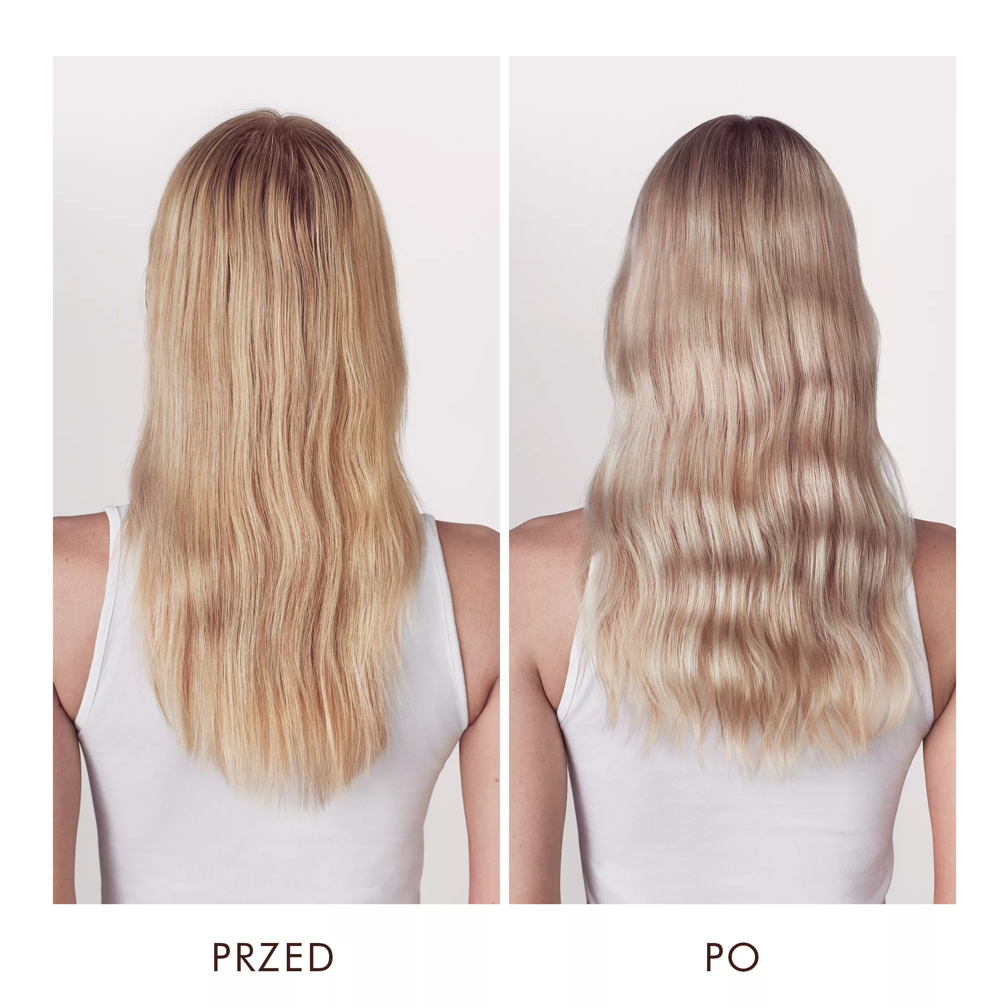 Po umyciu włosów Fioletowym Szamponem Blonde Perfecting nanieś odżywkę na wilgotne włosy i wmasuj dokładnie w pasma. Pozostaw na 1-2 minuty, a dla intensywniejszego efektu do 5 minut. Następnie dokładnie spłucz. Stosuj regularnie, by cieszyć się chłodnym, lśniącym blondem bez niepożądanych tonów.