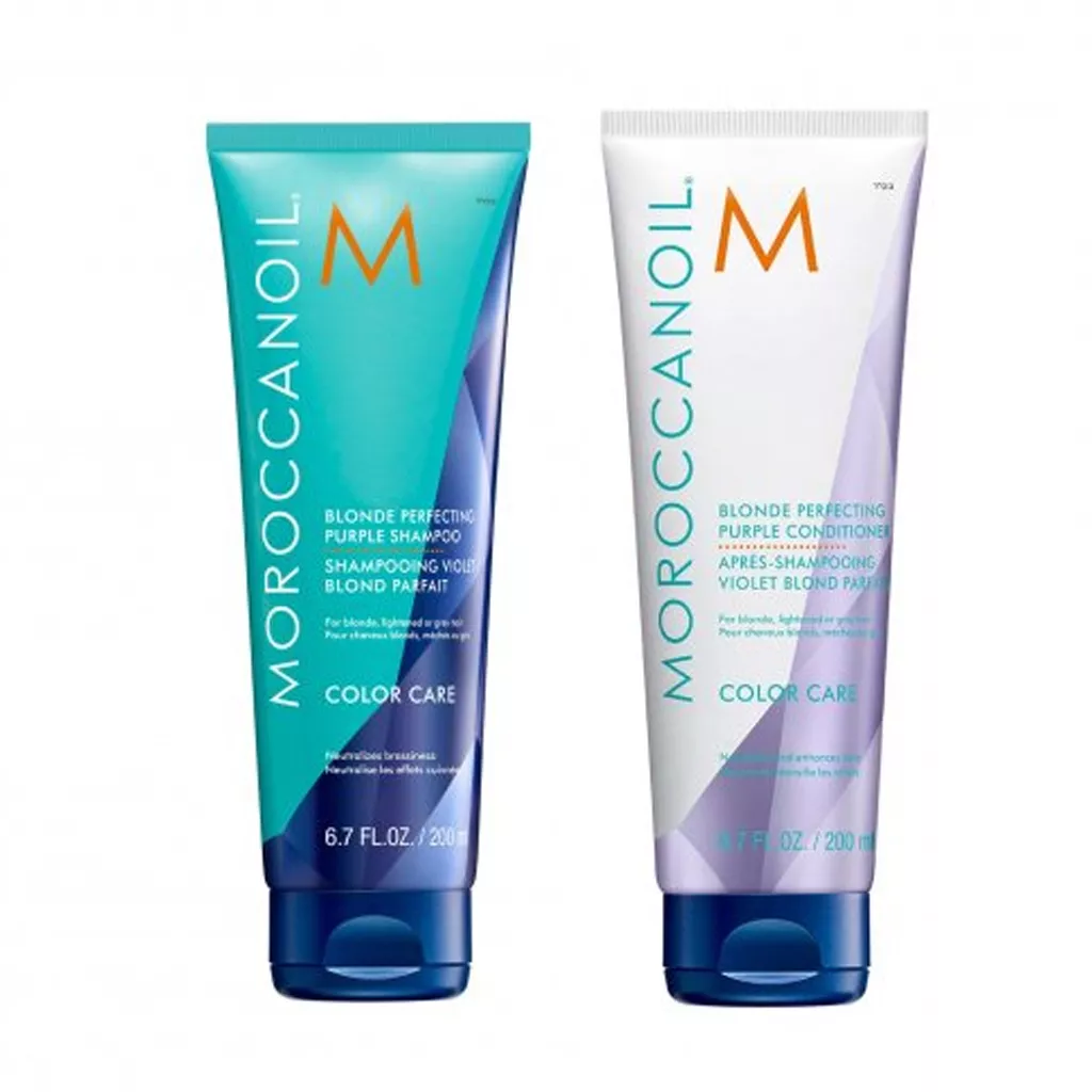 Zapomnij o niepożądanych odcieniach na blond włosach dzięki zastosowaniu fioletowego szamponu Moroccanoil Blonde Perfecting. Zastosowanie specjalnych pigmentów w formule kosmetyku sprawia, że z włosów znikają żółte i rude tony. Kosmetyk jest rekomendowany dla włosów blond, rozjaśnionych brązach oraz włosach siwych. Zapomnij o niepożądanych odcieniach na blond włosach dzięki zastosowaniu fioletowej odżywki Moroccanoil Blonde Perfecting. Kompleks ArganID odbudowuje kosmyki i wzmacnia je.