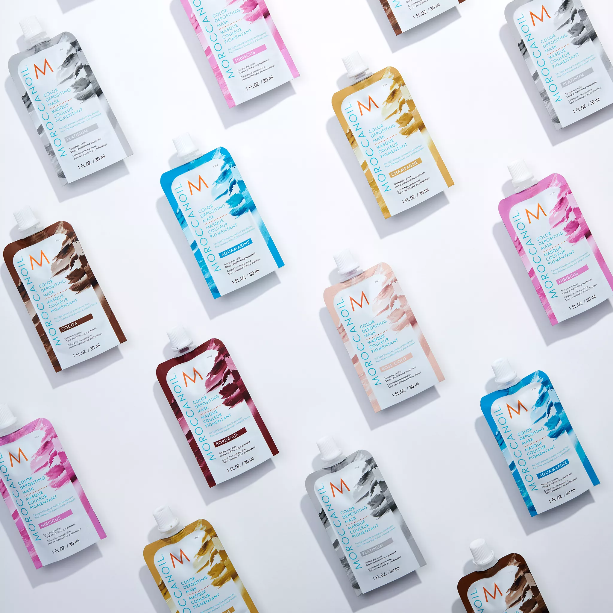 - Dla uzyskania bardziej subtelnego efektu wymieszaj ¼ maski Color Depositing z ¾ Nawilżającej Maseczki Moroccanoil.