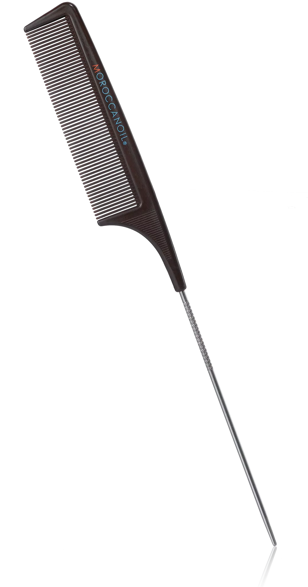 Sięgnij po grzebień karbonowy Moroccanoil ze szpikulcem, jeśli chcesz natapirować włosy dla efektu większej objętości i uniesienia pasm u nasady. Szpikulec ułatwia precyzyjne dzielenie włosów na sekcje. Grzebień wykonano z wysokiej jakości, niezwykle odpornego na uszkodzenia materiału. Grzebień jest odporny na działanie wysokiej temperatury. Prosta i smukła konstrukcja zapobiega wplątywaniu się włosów.