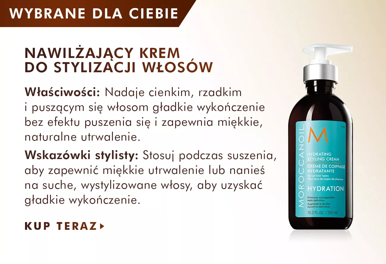 - Dla włosów bardzo grubych, trudnych do ułożenia lub szczególnie niesfornych, zaleca się wymieszać 1–2 pompki kremu z kilkoma kroplami Kuracji Moroccanoil, aby dodatkowo odżywić i wygładzić włosy.