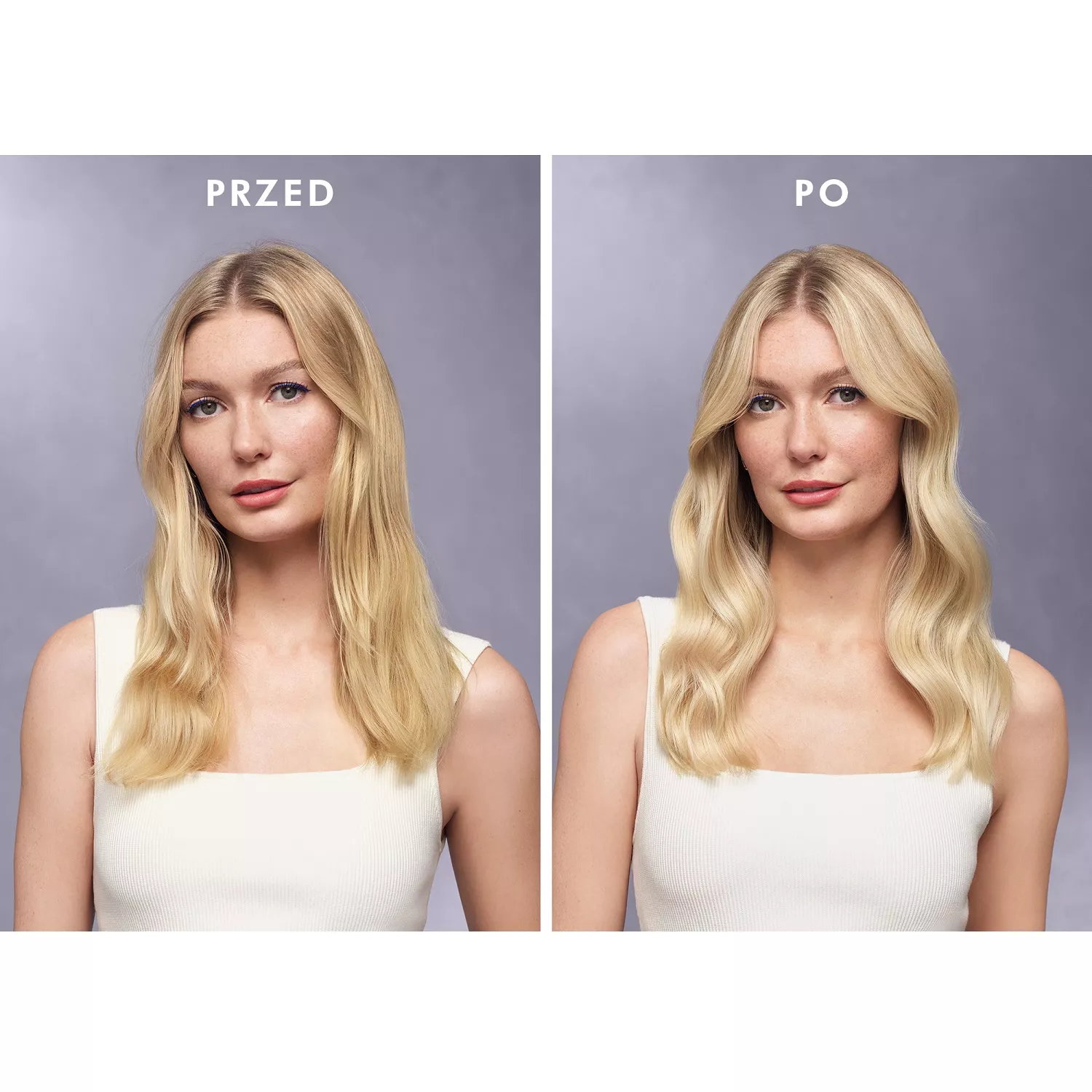 - Stosuj regularnie, aby utrzymać chłodny odcień i zdrowy wygląd włosów blond lub siwych.
