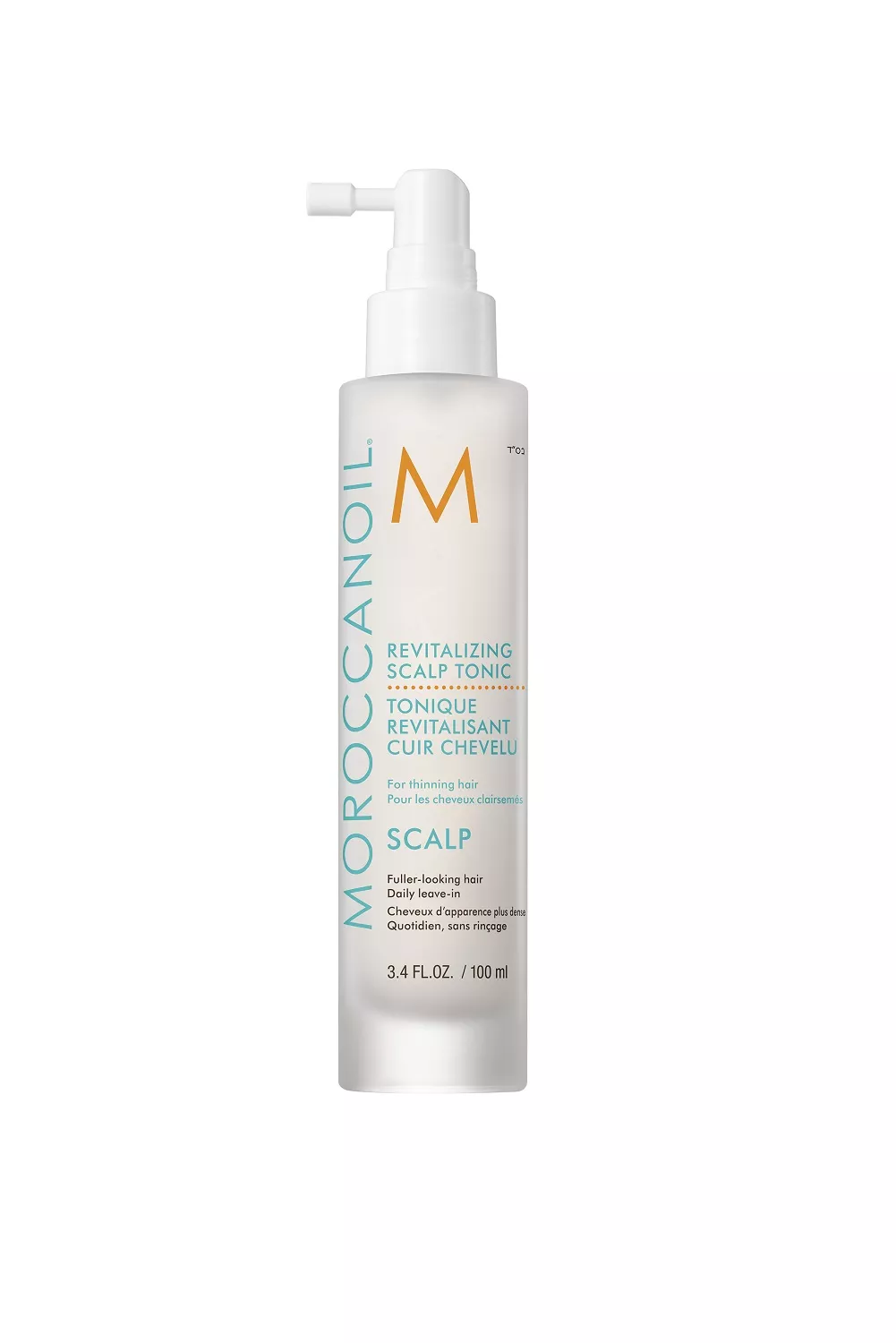 Poznaj Moroccanoil Scalp – rewitalizujący tonik do skóry głowy przeciw wypadaniu włosów, który został stworzony z myślą o osobach pragnących przywrócić gęstość i zdrowie swoich włosów. To innowacyjna, szybko wchłaniająca się kuracja bez spłukiwania, która skutecznie ogranicza widoczność wypadania włosów, wzmacnia skórę głowy i zapewnia jej głębokie odżywienie każdego dnia. Dzięki połączeniu ekstraktów roślinnych i olejku arganowego, produkt nie tylko pielęgnuje włosy, ale także koi i nawilża skórę głowy, zapewniając jej komfort oraz zmysłowe doznania aromaterapeutyczne.