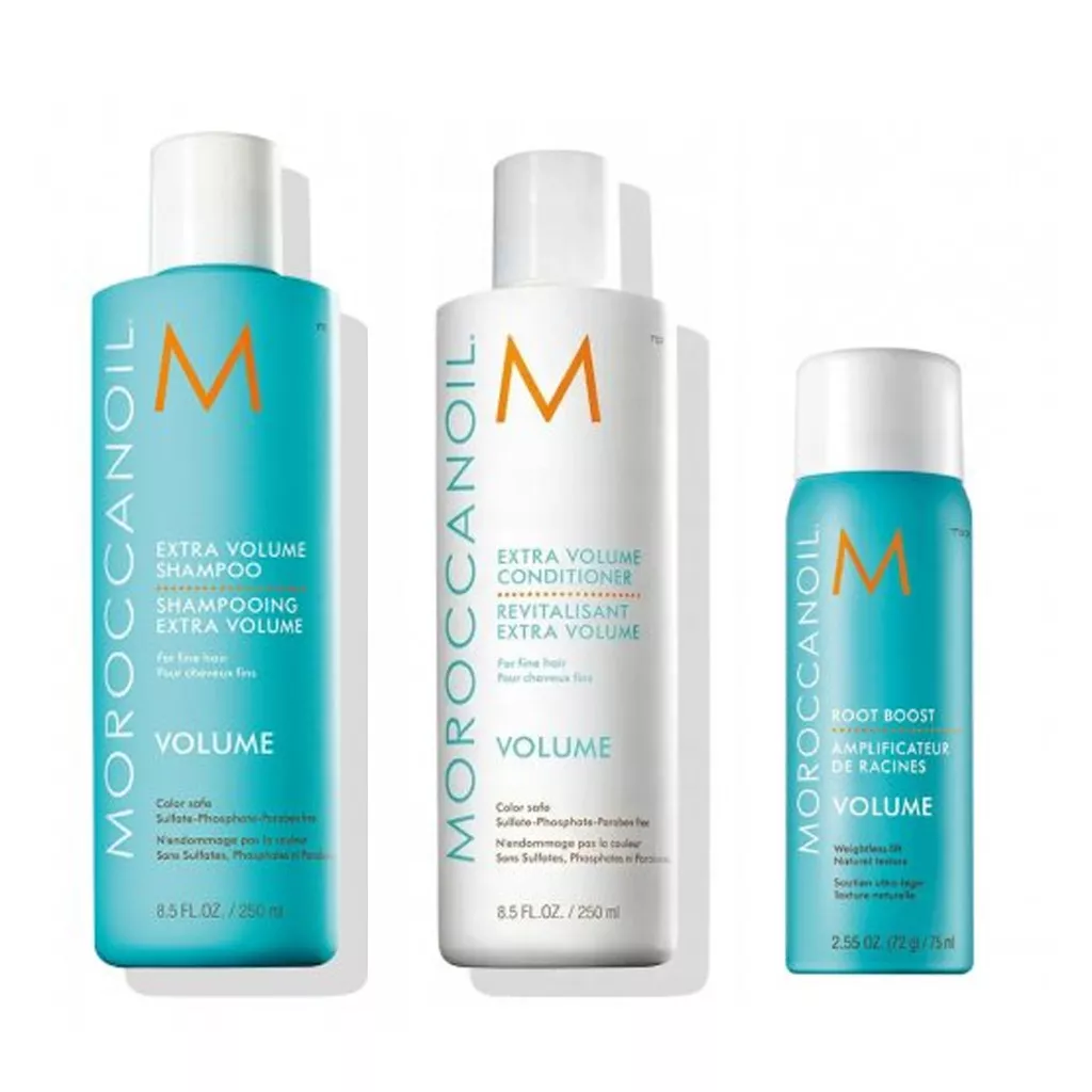 Spray do włosów Moroccanoil Volume Root Boost unosi włosy u nasady i nadaje im wyraźną teksturę. Ponadto zmniejsza puszenie i sprawia, że włosy są pełne energii. Szampon Moroccanoil Volume dodaje objętości i łagodnie oczyszcza włosy, bez żadnego obciążania, co jest niezwykle ważne dla tego typu kosmyków. Dodatkowo, dzięki zawartości olejku arganowego, szampon chroni włosy przed wolnymi rodnikami i rewitalizuje. Odżywka zwiększająca objętośc Moroccanoil Volume ułatwia rozczesywanie włosów i dodaje im objętości. Dzięki temu, że nie szarpiesz pasm podczas rozczesywania, włosy nie łamią się i nie wypadają.