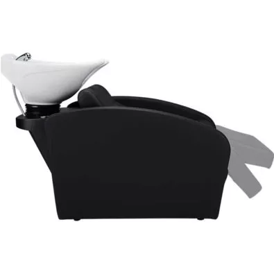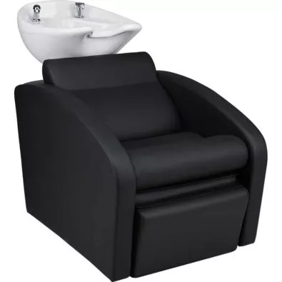 Myjnia posiada profilowane oparcie i rozkładany podnóżek zapewniające maksymalny komfort podczas mycia włosów.