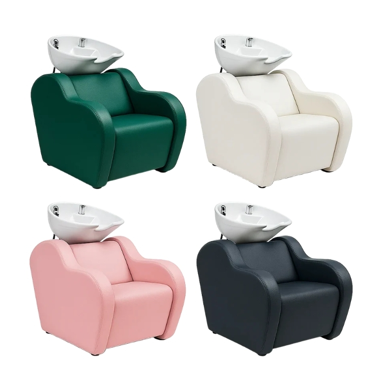 Myjnia fryzjerska HOLLY - opływowa i elegancka linia podłokietników oraz subtelne, dekoracyjne przeszycia sprawiają, że mebel prezentuje się jak przysłowiowy milion dolarów.