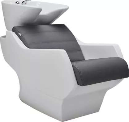 Jednocześnie myjnia jest niezwykle ergonomiczna - cały tył został zaprojektowany, tak by fryzjer mógł pracować przy myjni na stojąco lub siedząco, a głęboka misa ułatwia pracę.