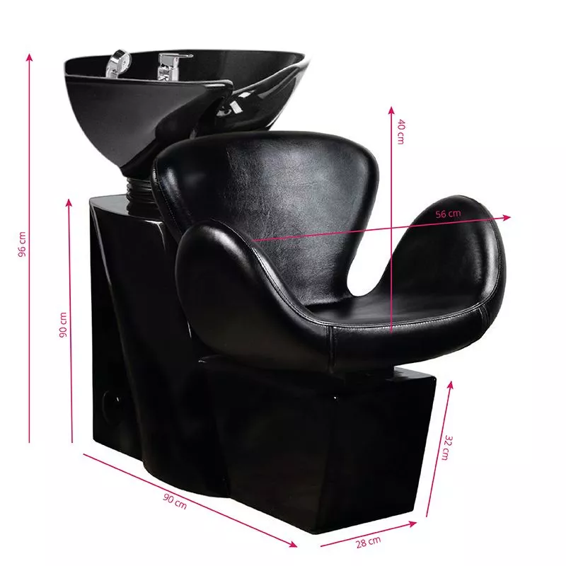 Wymiary myjni fryzjerskiej są dostępne na jednym ze zdjęć produktu, co pozwala na łatwe zaplanowanie przestrzeni w salonie.