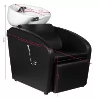 Dokładne wymiary myjni fryzjerskiej zostały przedstawione na jednym ze zdjęć, co ułatwi Ci aranżację przestrzeni w salonie.