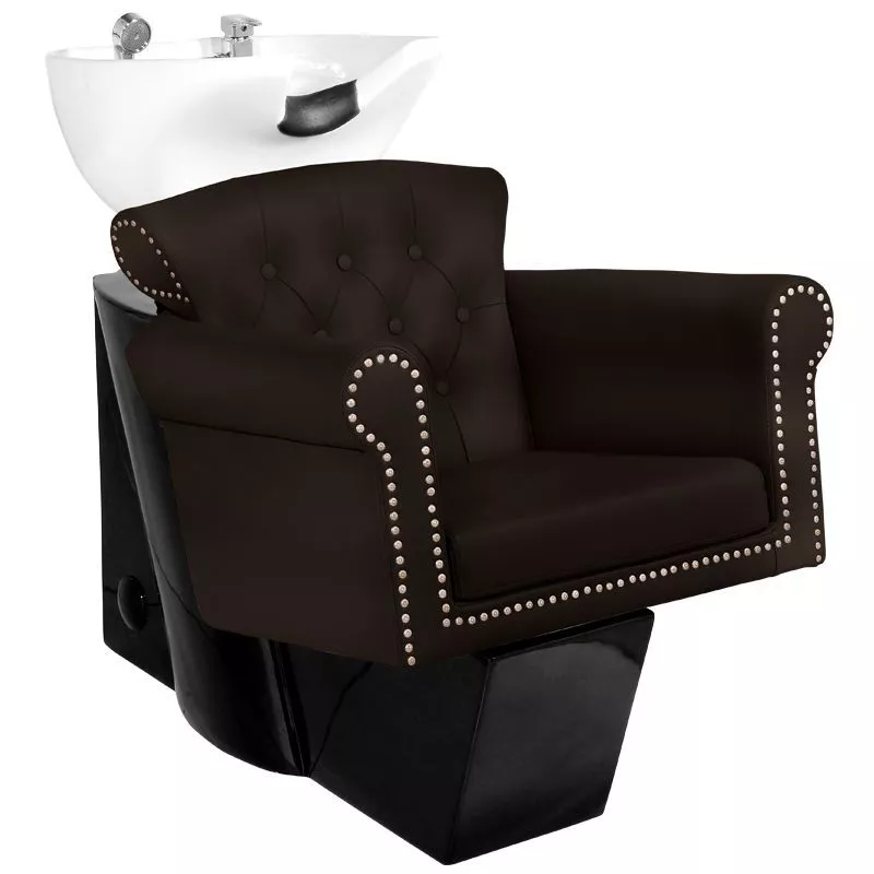 - Stylowy design: Brązowe obicie z najwyższej jakości ekoskóry doskonale komponuje się z czarną bazą, tworząc elegancki wygląd pasujący do nowoczesnych wnętrz salonów fryzjerskich.