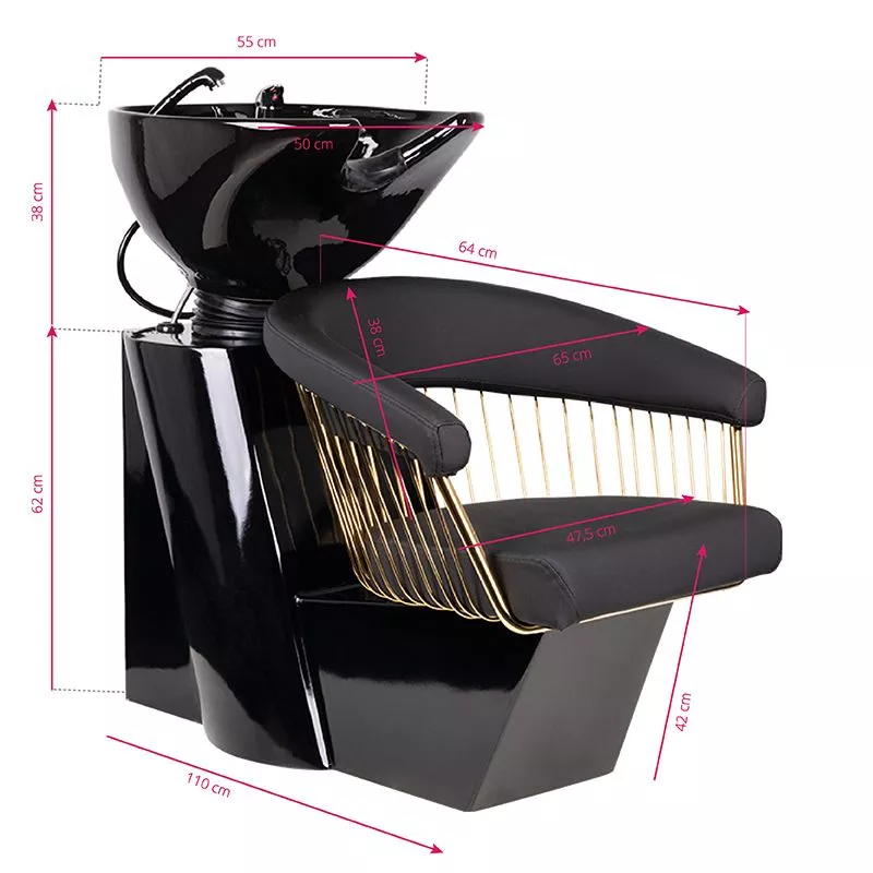 Odkryj elegancję i funkcjonalność z myjnią fryzjerską Gabbiano Lille w kolorze złoto-czarnym, która jest dostępna w 48 godzin. Ten wyjątkowy mebel fryzjerski, zaprojektowany z najwyższą starannością i dbałością o szczegóły, doda Twojemu salonowi nowoczesnego i stylowego charakteru.