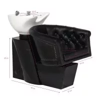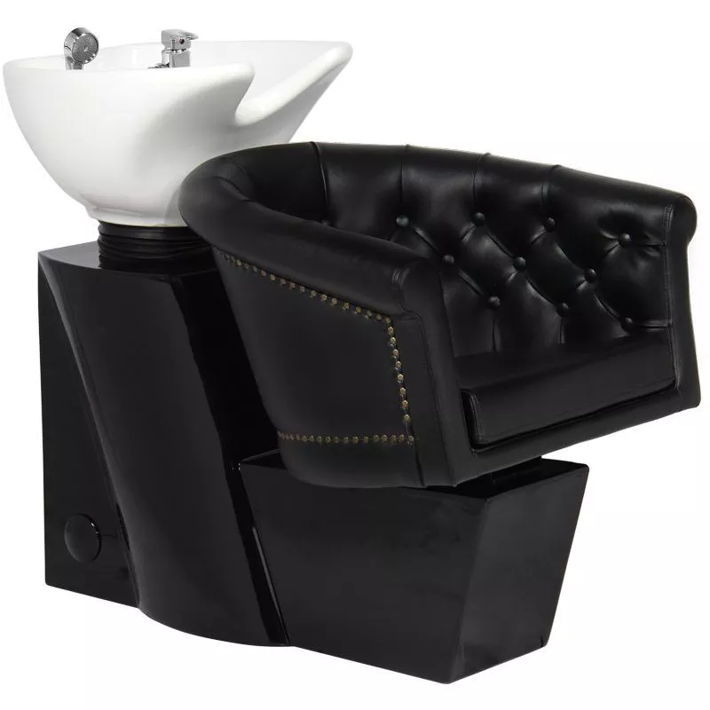 Myjnia fryzjerska Gabbiano Londyn jest nie tylko funkcjonalna, ale również niezwykle stylowa. Dzięki obiciu z najwyższej jakości ekoskóry w klasycznym czarnym kolorze, idealnie dopełni wnętrze każdego eleganckiego salonu fryzjerskiego.