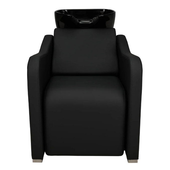Myjnia Belcanto wyróżnia się smukłą, kompaktową bryłą oraz klasyczną czernią tapicerki, dzięki czemu idealnie komponuje się z różnorodnymi wnętrzami. Profilowane podłokietniki i jednolita forma podkreślają nowoczesny charakter stanowiska, a trwała, łatwa w czyszczeniu skóra syntetyczna gwarantuje nienaganny wygląd nawet przy intensywnym użytkowaniu.