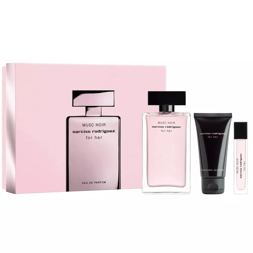 Odkryj wyjątkowy zestaw zapachowy Narciso Rodriguez For Her Musc Noir, który jest kwintesencją elegancji i zmysłowości. W skład zestawu wchodzi woda perfumowana o pojemności 100 ml, balsam do ciała 50 ml oraz poręczna woda perfumowana 10 ml, idealna do torebki.