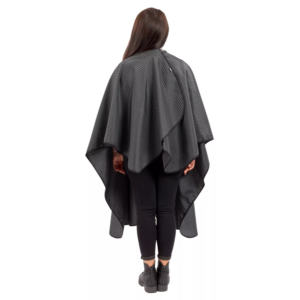 Neocape, peleryna fryzjerska czarna w białe paski, 135x170cm